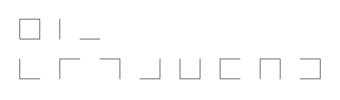 Umgekehrt koennte man auf der Basis eines einfachen Vierecks (ohne 'Fenstersprossen') ein kleineres Alphabet als das lateinische darstellen: